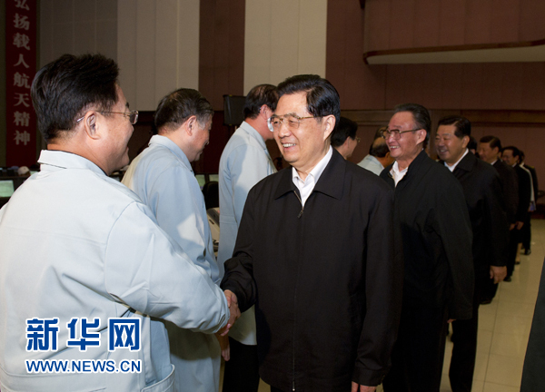 在北京航天飛行控制中心飛控大廳,胡錦濤等領(lǐng)導(dǎo)同志同現(xiàn)場工作人員一道為發(fā)射成功熱烈鼓掌,向他們表示祝賀和慰問。胡錦濤總書記特別叮囑大家,一定要大力發(fā)揚(yáng)載人航天精神,更加精心細(xì)致地做好各項(xiàng)工作,確保我國首次空間交會(huì)對接任務(wù)圓滿成功。