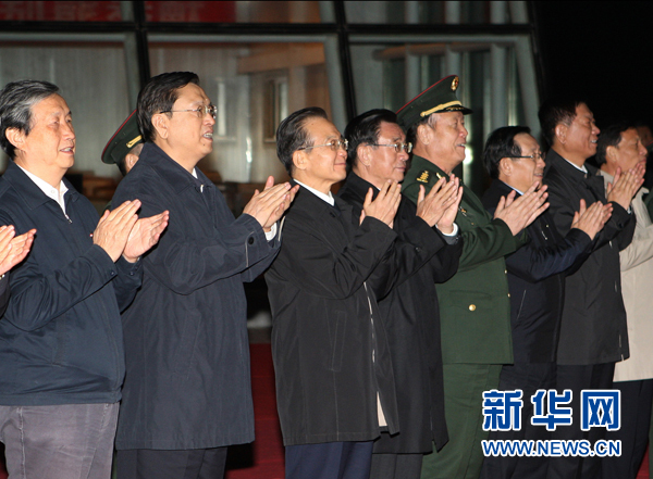 在酒泉衛(wèi)星發(fā)射中心現(xiàn)場觀看發(fā)射的領(lǐng)導(dǎo)同志還有:張德江、郭伯雄、馬凱、萬鋼等。
