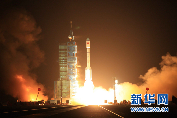 9月29日,中國在酒泉衛(wèi)星發(fā)射中心用長征二號(hào)F運(yùn)載火箭將天宮一號(hào)目標(biāo)飛行器發(fā)射升空。 新華社記者 王建民 攝
