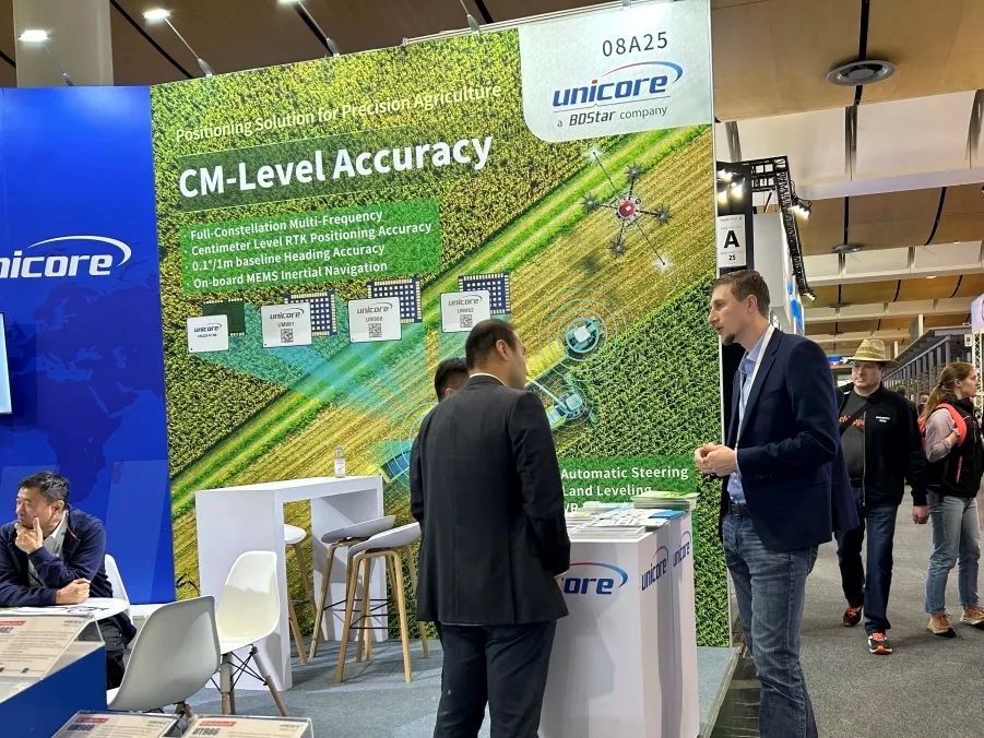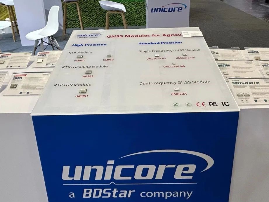 和芯星通圍繞“云芯一體”戰(zhàn)略,展出了面向精準(zhǔn)農(nóng)業(yè)的GNSS定位芯片、模組、板卡等產(chǎn)品,與同為北斗星通旗下企業(yè)的華信天線展示了模組+天線的配套解決方案。