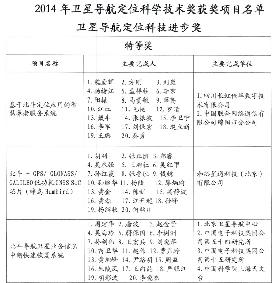 2014年度衛(wèi)星導航定位科學技術獎評選結果公示,和芯蜂鳥Humbird獲特等獎