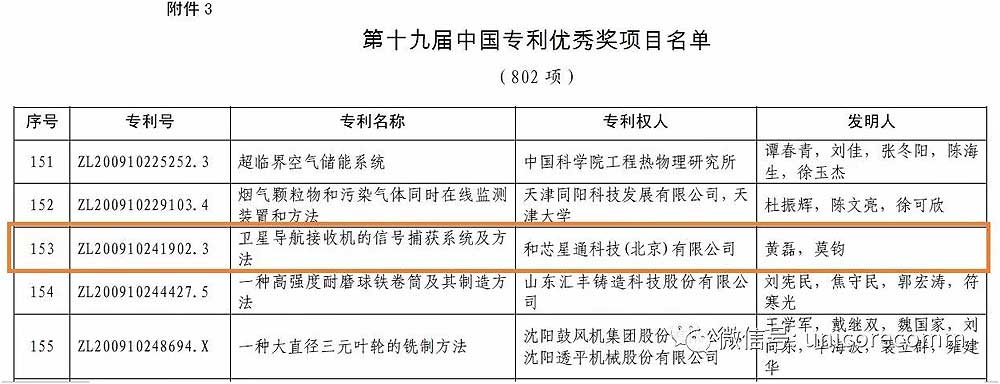 12月13日,由國家知識產權局和世界知識產權組織共同主辦的第十九屆中國專利獎頒獎大會在北京舉行。和芯星通“衛星導航接收機的信號捕獲系統及方法”榮獲第十九屆中國專利優秀獎。該獎項是我國唯一專門對授予專利權的發明創造給予獎勵的政府部門獎,也是我國知識產權領域的最高專利獎項。評獎標準不僅強調項目的專利技術水平和創新高度,也注重其在市場轉化過程中的運用情況。