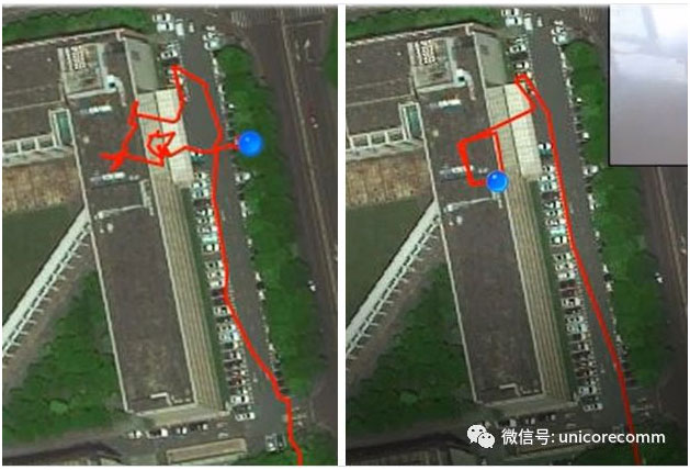 此外,和芯星通在發布現場展示了經過大量實際測試采用PDR算法技術的行人導航模式定位準確性遠優于算法未開啟情況。
