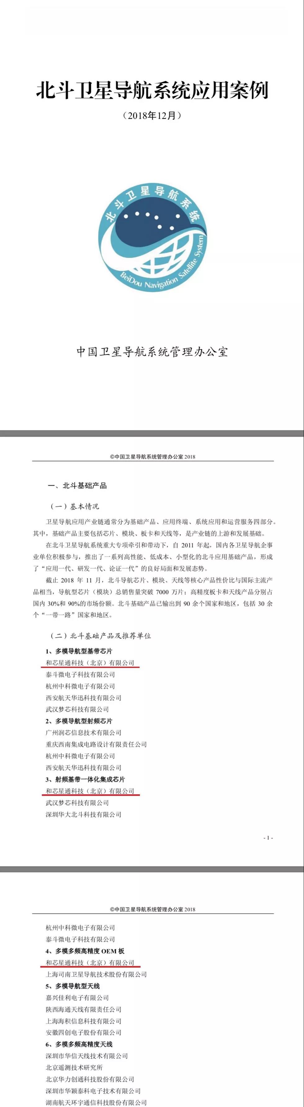 2018年12月27日,北斗三號基本系統(tǒng)建成及提供全球服務(wù)情況發(fā)布會在國務(wù)院新聞辦公室新聞發(fā)布廳召開。中國衛(wèi)星導(dǎo)航系統(tǒng)管理辦公室正式發(fā)布《北斗衛(wèi)星導(dǎo)航系統(tǒng)應(yīng)用案例(2018年12月)》,和芯星通位列三項“第一推薦”。